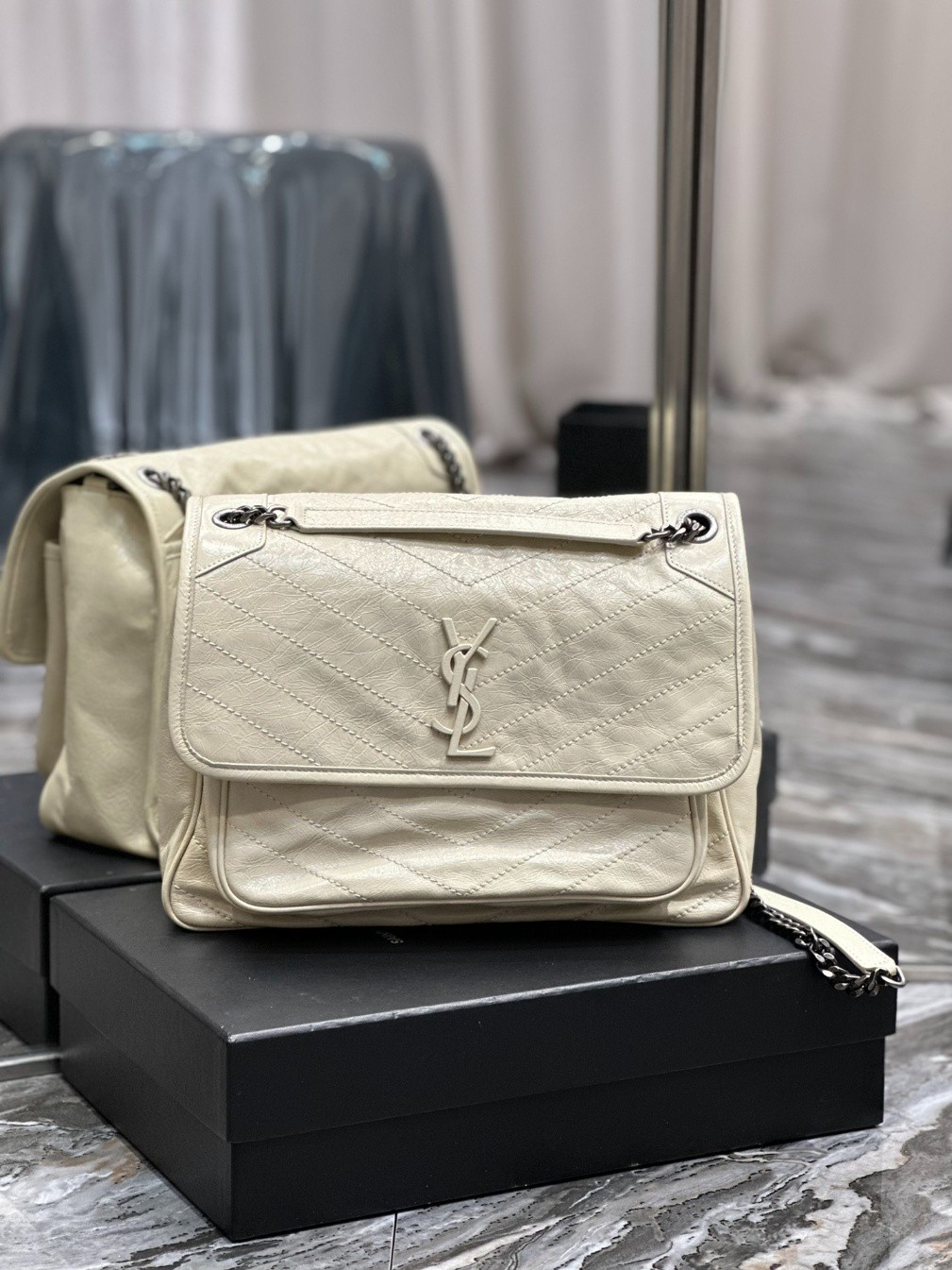 YSL 빈티지 가죽 소재 niki 라지 화이트 [매장 가격 520]