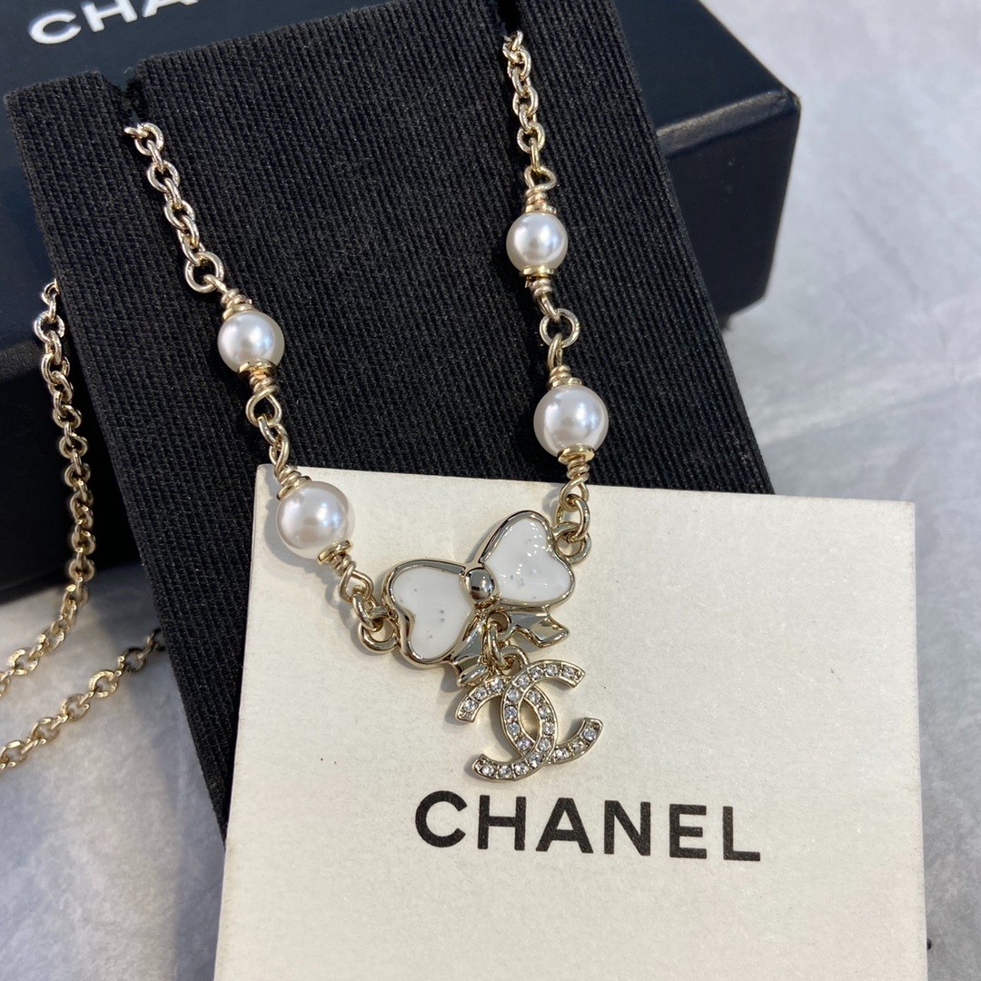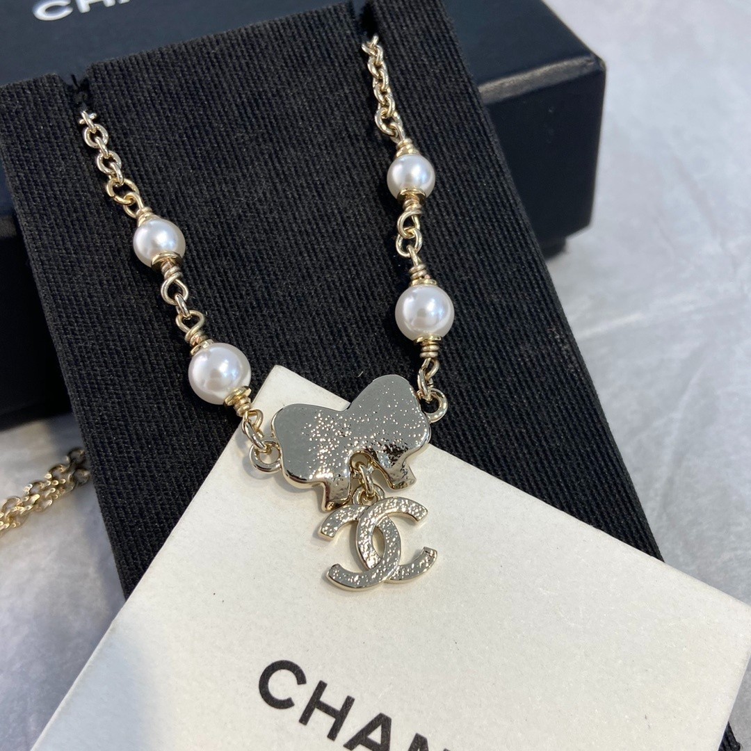 CHA 25 글래스 펄, 스트라스 골드 초커 [매장 가격 123]